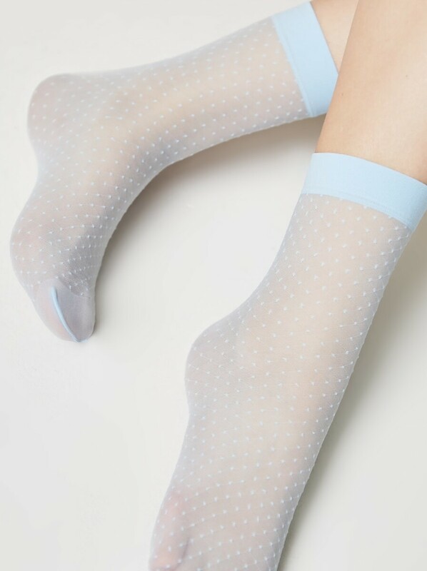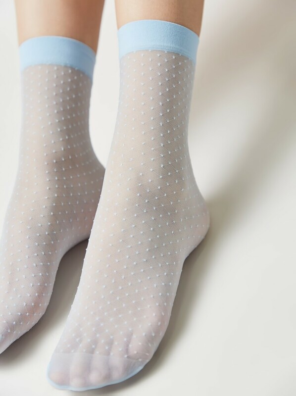 Эластичные полупрозрачные носки в горошек станут стильным акцентом вашего модного образа. Вы оцените удобный эластичный борт и комфортную облегающую посадку на ноге.