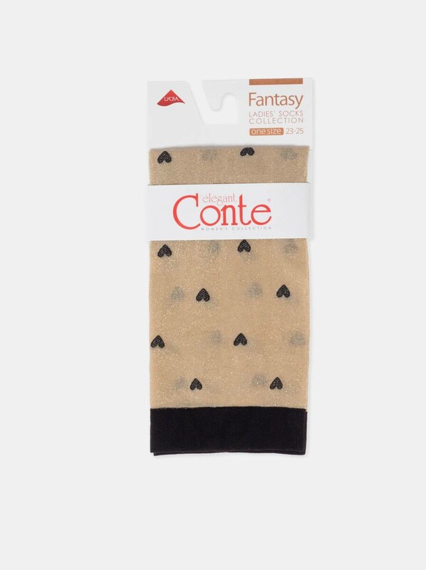Полиамидные CONTE FANTASY Сияющие носки с объемными рисунками «Hearts»