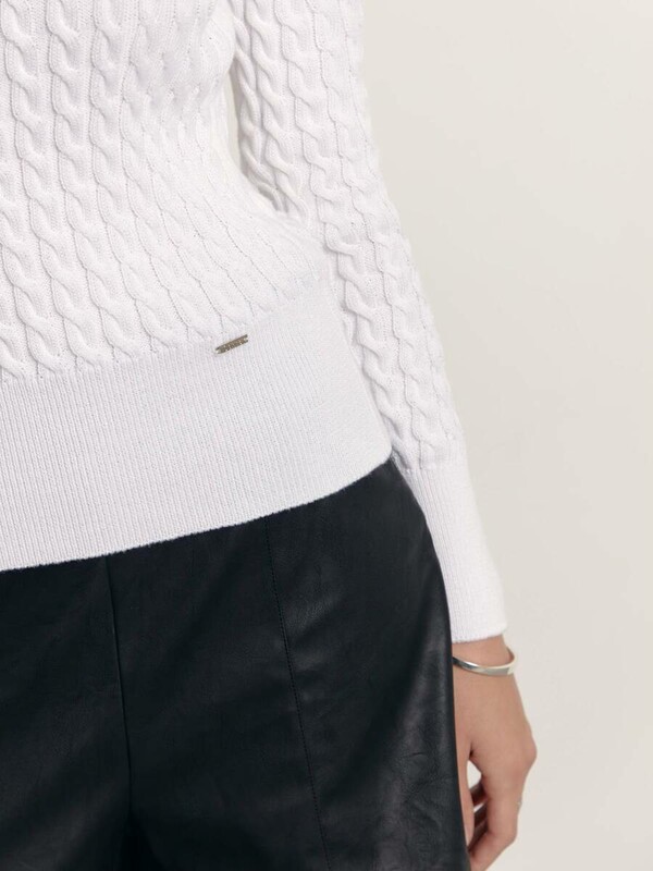Укороченный джемпер вывязанный переплетением «косы» и вырезом на спине LDK 176 станет источником вдохновения для множества стильных образов. Эффектный, безупречно сидящий по фигуре и невероятно приятный к телу джемпер гарантированно станет любимой вещью этого сезона. PREMIUM COTTON: хлопок премиального качества мягкий, приятный к телу и «дышащий». · круглый вырез горловины· длинные рукава с высокими манжетами· прилегающий силуэт· безупречная посадка по фигуре· фактурное переплетение «косы»· V-образный вырез по спинке· пряжа с хлопком премиального качества· металлическая пластинка с логотипом бренда· чувствуйте себя уверенно в том, что носите. пан 50%, хлопок 50%