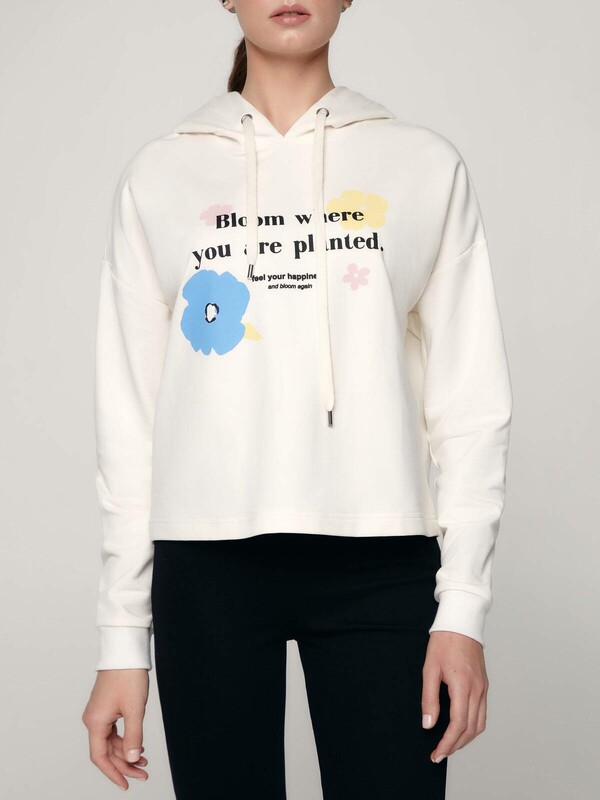Укороченное худи LD 1169 из ультрамягкого полотна с цветочным рисунком - свежий подход к созданию повседневного образа в лучших традициях уличной моды. · укороченная модель· свободный крой· капюшон со шнурком· спущенная линия плеча· длинные рукава с манжетами· ультрамягкое полотно с высоким содержанием хлопка· актуальный цветочный рисунок· сохранение формы и цвета при соблюдении рекомендаций по уходу· минимализм и абсолютная свобода в лучших традициях уличной моды.