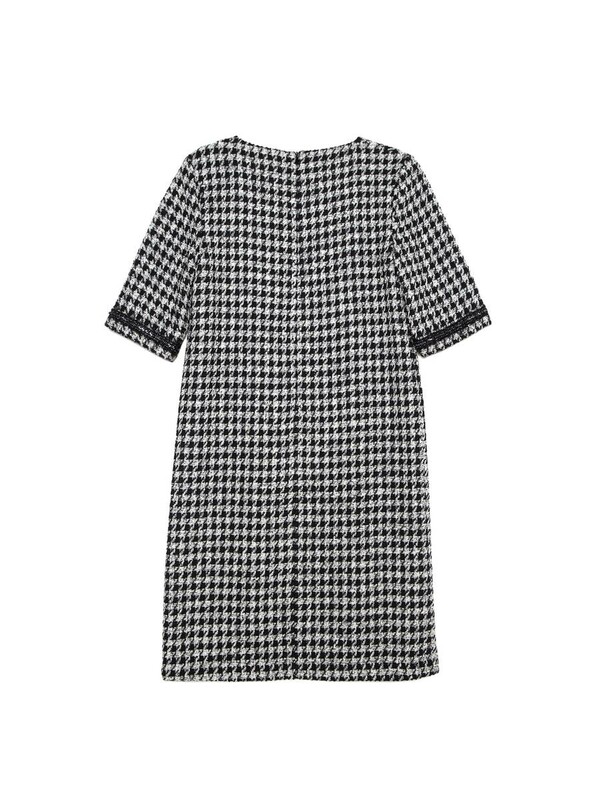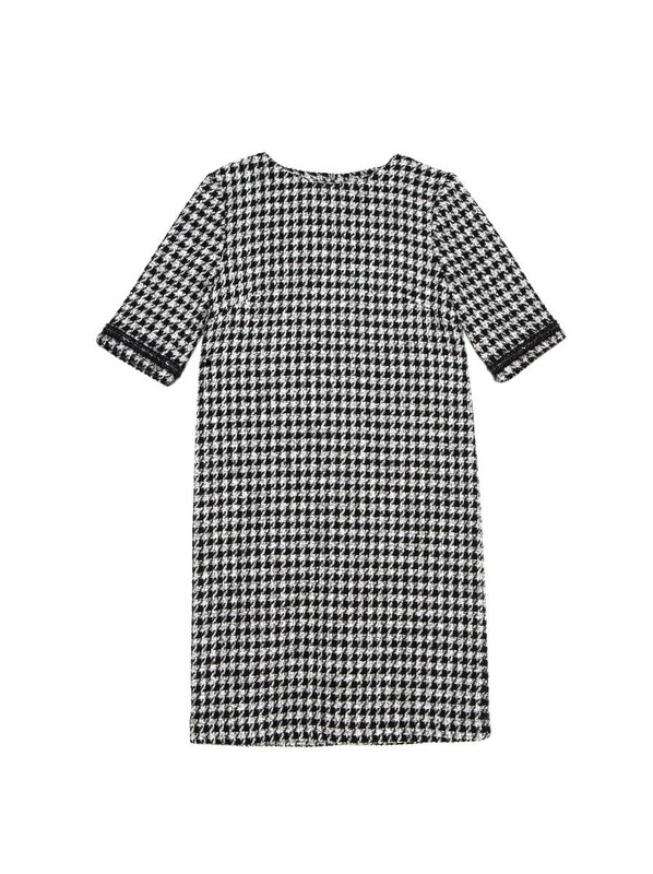 Платье в уточненном французском стиле с легким мерцанием люрекса LPL 1053 – всегда уместная классика как для повседневного офисного гардероба современной девушки, так и для вечернего выхода в свет. Благодаря рисунку «гусиная лапка» и декоративной тесьме по рукавам платье смотрится лаконично, и при этом оригинально. · круглый вырез горловины· прямой силуэт;· длина midi;· рукава 3/4;· плотное фактурное полотно с легким мерцанием люрекса· эксклюзивная тесьма с металлическими элементами, разработанная итальянскими дизайнерами специально для Conte;· сохранение формы и цвета при соблюдении рекомендаций по уходу;· классический французский стиль Коко Шанель;· современная классика для повседневного офисного и вечернего гардероба.