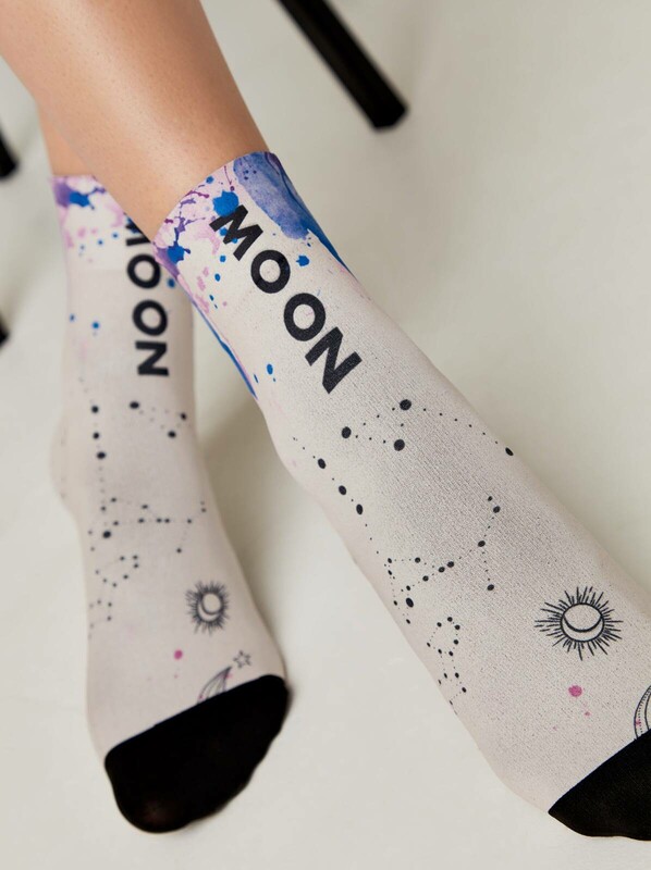 Плотные носки с особенно устойчивым рисунком, нанесенным с помощью термотрансферной печати, станут стильным и индивидуальным акцентом в повседневных образах. Термотрансферная печать - процесс, при котором специальная краска на бумажном носителе резко нагревается, переходит из твердого состояния в газообразное и переносится с бумаги на носки, глубоко проникая в волокна и создавая устойчивое изображение. · 70 den· плотные и эластичные· рисунок, нанесенный с помощью термотрасферной печати· использование черной полиамидной нити для контрастности рисунка· мысок выделен черной полиамидной нитью· эффект 3D· c бортом· без пятки· стиль начинается с индивидуальности.