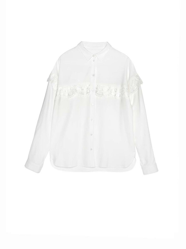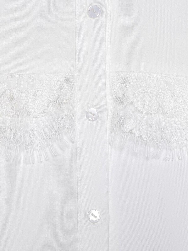 Однотонная рубашка из вискозы с эффектом "прикосновение шелка" – беспроигрышная классика в современном исполнении. Рубашка хорошо сочетается с офисными брюками, юбками и джинсами любого цвета и кроя. · полотно из вискозы премиального качества;· беспроигрышный вариант для офисного и повседневного гардероба;· свободный силуэт;· классический воротник;· спущенная линия плеча;· втачные рукава;· кружево по груди и рукавам;· широкие манжеты по рукавам с застежкой на одну пуговицу;· застежка на пуговицы, скрытые планкой;· фигурный низ;· сохранение формы и цвета при соблюдении рекомендаций по уходу.