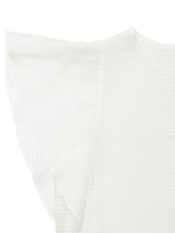 Блузка из вискозы с широкими воланами LBL 1097 – отличный способ придать образу легкость и особой шарм. SILK TOUCH VISCOSE: премиальная вискоза «Ощущение шелка» подарит мягкость и комфорт на протяжении всего дня. · круглый вырез горловины· без рукавов· легкий, воздушный волан – «крылышко»· прямой крой · застежка сзади на пуговицу· легкое полупрозрачное полотно в полоску· Silk touch viscose· сохранение формы и цвета при соблюдении рекомендаций по уходу· для тех, кто хочет подчеркнуть женственность и индивидуальность.