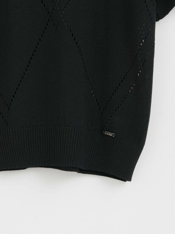 Джемпер прямого силуэта связан из тонкой шелковистой пряжи на основе вискозы красивым сочетанием ажурного переплетения и кулирной глади. Модель поможет подчеркнуть индивидуальность и сделает повседневный образ элегантным. · круглый вырез горловины· классическая линия плеч· короткие втачные рукава· прямой силуэт· гладкая и приятная к телу пряжа с вискозой· сочетание двух переплетений: ажурного и кулирной глади· сохранение формы и цвета при соблюдении рекомендаций по уходу· лаконично, женственно и элегантно.