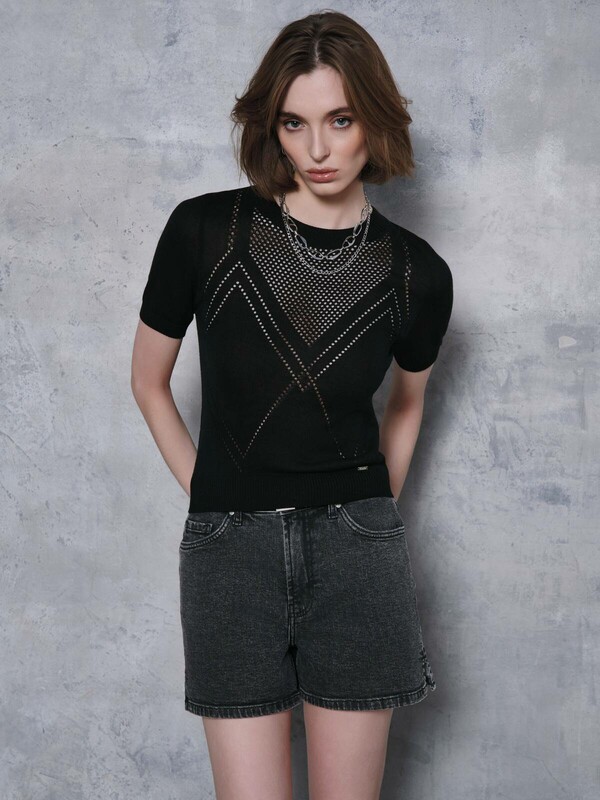 Джинсовые шорты с эффектом варки и разрезами по бокам - must have в летнем гардеробе.Плотные и вместе с тем дышащие благодаря высокому содержанию хлопка, эти шорты прекрасно держат форму и гарантируют легкость и комфорт даже в жаркий день.