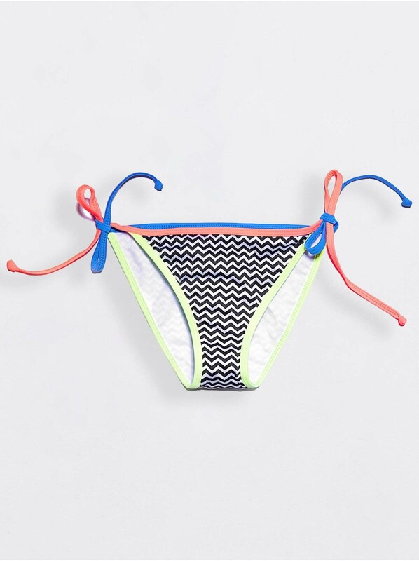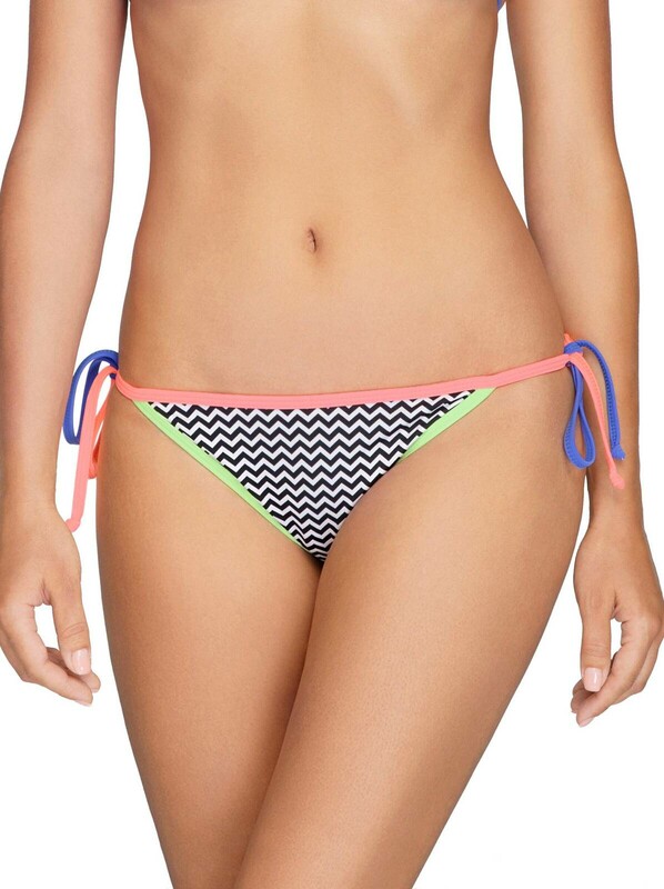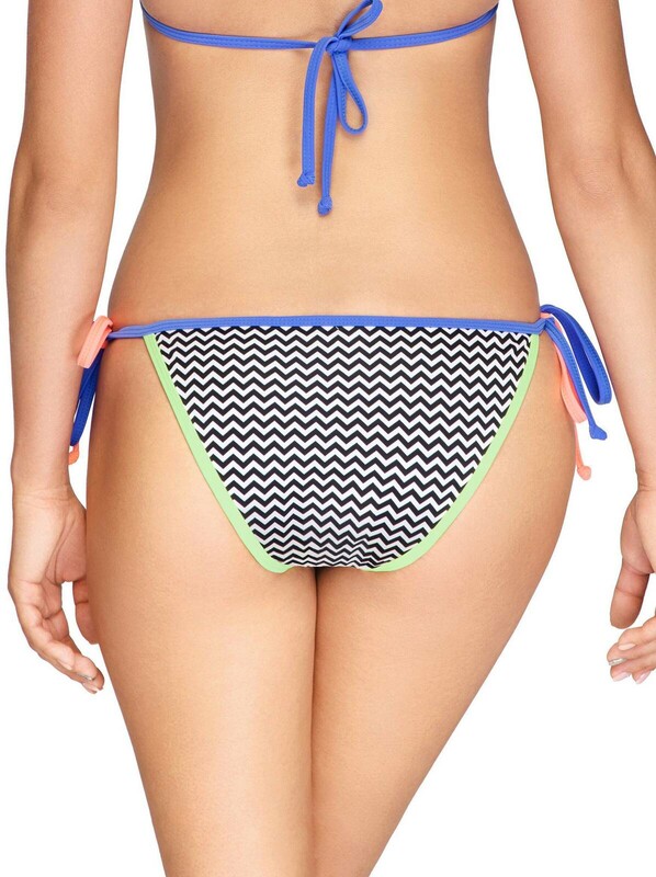 Трусики бикини с завязками на бедрах – классическая пляжная модель. Изюминка этого купальника в сочетании монохромного принта зигзаг и яркой цветной окантовки. полиамид 85%, эластан 15%