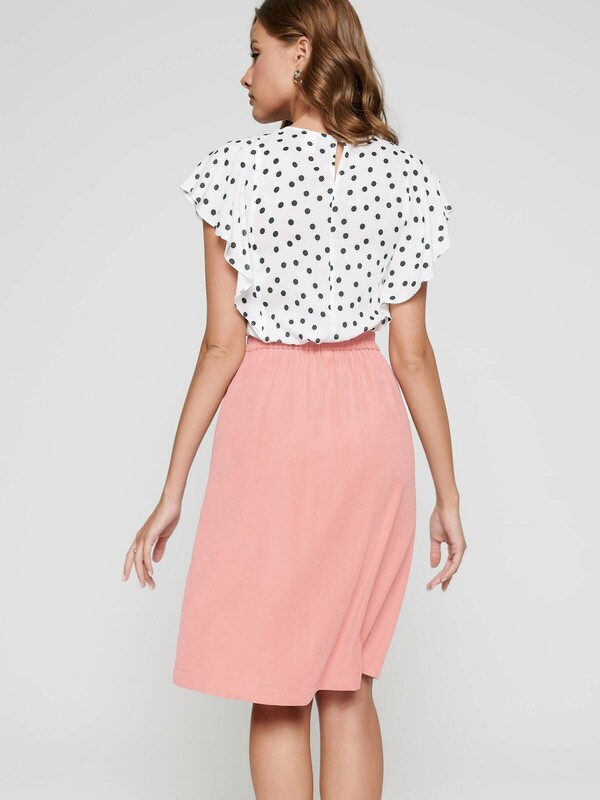 Юбка А-силуэта Frosty из вискозы с эффектом «прикосновение вельвета» легкая, свободно струящаяся по фигуре, поэтому в юбке будет комфортно даже в жаркий летний день. Благодаря высокой линии талии и свободной посадке Frosty прекрасно подходит для всех типов фигуры. VELVET TOUCH VISCOSE: деликатная, ультрамягкая вискоза с ненавязчивым блеском на ощупь напоминает вельвет. Полотно с вискозой с эффектом «прикосновение вельвета» хорошо держит форму и практически не мнется. · высокая посадка· свободный A-силуэт· длина до колена· притачной пояс с эластичной тесьмой по спинке· легкое струящееся полотно· вискоза премиального качества «Прикосновение вельвета»· функциональные накладные карманы по бокам· сохранение формы и цвета при соблюдении рекомендаций по уходу· то, что нужно для свежего летнего образа.