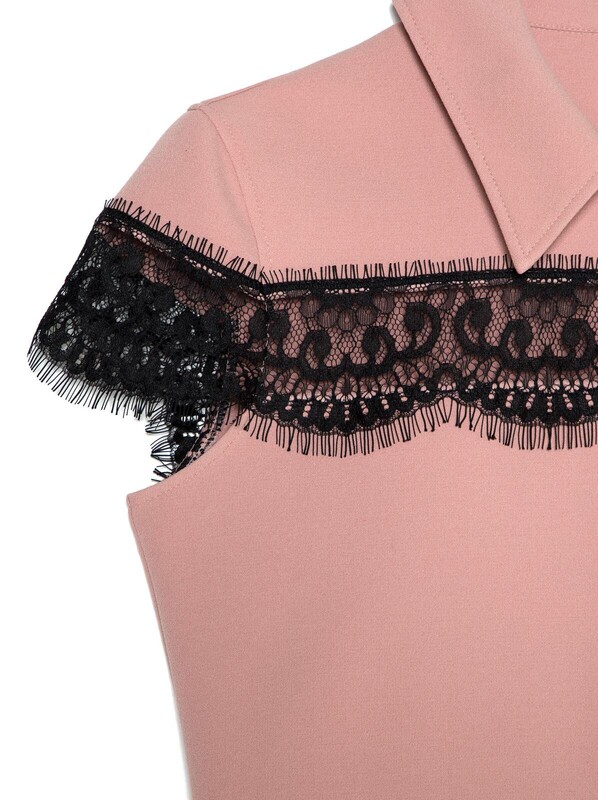 Платье приталенного силуэта с фактурным кружевом LPL 1038 - прекрасный вариант для дневного образа и офисного гардероба.