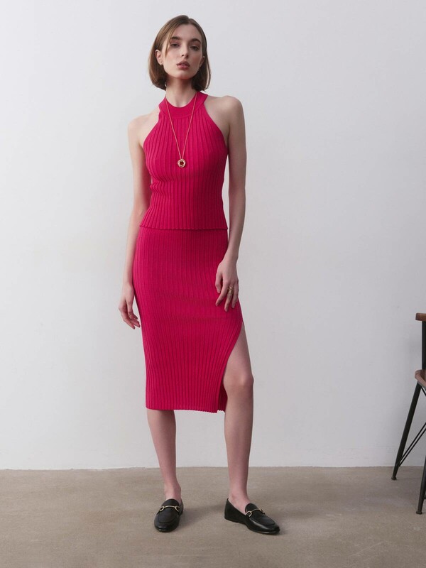 Фактурное переплетение ластик в сочетании с ажурным переплетением, прилегающий силуэт и интригующий разрез в боковом шве делают эту юбку особенной частью гардероба, которую вам захочется надевать как можно чаще. Модель изготовлена из тонкой шелковистой пряжи на основе вискозы. PREMIUM VISCOSE: вискоза премиального качества легкая, гладкая, с приятным матовым блеском. Вязаный трикотаж с вискозой приятно холодит, а небольшое количество полиэстра в составе помогает ей сохранять форму. Пряжа устойчива к разрывам, образованию катышек, усадке. · высокая посадка на талии· двойной пояс с эластичной тесьмой· длина midi· прилегающий силуэт· разрез в боковом шве· гладкая и приятная к телу пряжа с вискозой· фактурное переплетение ластик в сочетании с ажурным · сохранение формы и цвета при соблюдении рекомендаций по уходу· лаконично, женственно и элегантно.