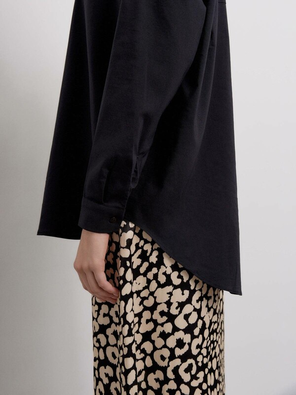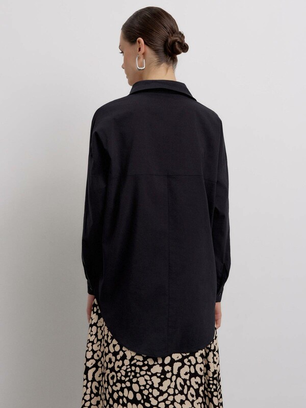 Лаконичный дизайн, свободный крой и абсолютный комфорт благодаря полотну с хлопком – эта рубашка имеет все шансы стать самой любимой частью гардероба для теплого сезона. · классическая длина· умеренно свободный крой· воротник с цельнокроеной стойкой· длинные втачные рукава с манжетами по низу· застежка на пуговицы по планке· спинке притачная широкая кокетка · низ фигурной формы (перед короче спинки)· мягкое и приятное к телу хлопковое полотно· устойчивый цвет и сохранение формы при соблюдении рекомендаций по уходу· выполнена в лучших традициях минимализма.