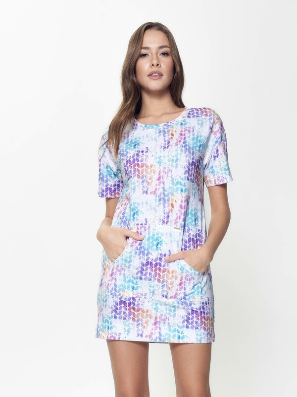 Эластичная хлопковая туника с большим функциональным карманом спереди - must have в гардеробе современной девушки. Вы оцените трендовый стиль "оversize", приятный к телу хлопковый трикотаж и свободную посадку. Туника мягко облегает силуэт, не сковывает движений и при этом идеально смотрится на любой фигуре. Яркий принт нанесенный методом цифровой печати устойчив к многочисленным стиркам и прекрасно сохраняет яркость цвета. хлопок 94%, эластан 6%