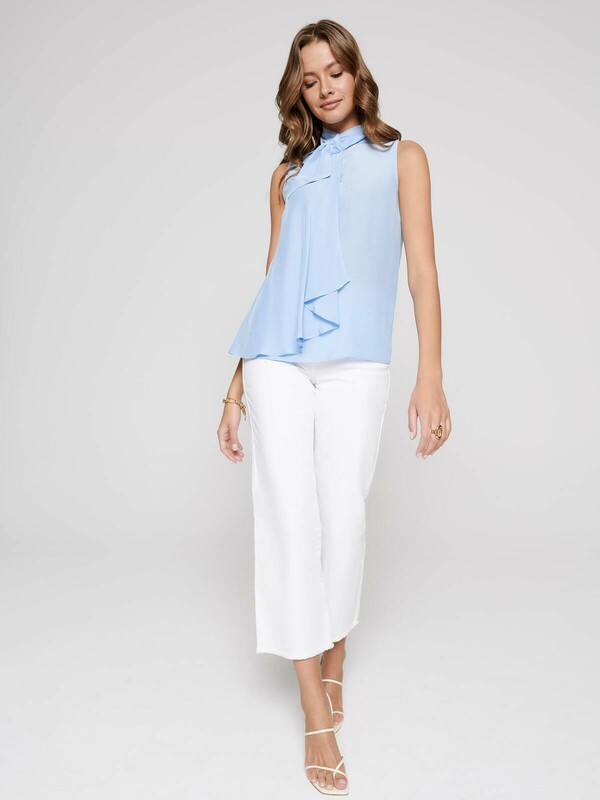 Легкая блузка из вискозы премиального качества LBL 1032 - идеальный компромисс между строгостью и сексуальностью. Блузка хорошо сочетается с брюками, джинсами, юбками и помогает создать запоминающийся образ благодаря оригинальному крою. SILK TOUCH VISCOSE: вискоза премиального качества с эффектом "прикосновение шелка" по своим свойствам повторяет натуральный шелк и дарит легкость, нежность и абсолютный комфорт на протяжении всего дня. · воротник аскот с застежкой сзади на 4 пуговицы· без рукавов· свободный силуэт· застежка на 4 пуговицы· оригинальный крой: спереди отлетная декоративная деталь· безупречная посадка по фигуре и свобода движений· Silk touch viscose· компромисс между строгостью и сексуальностью.