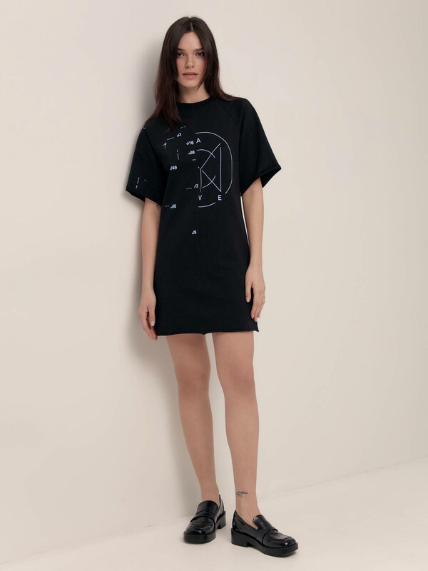 Платье из футера LPL 1640- свежий подход к созданию расслабленных образов в лучших традициях уличной моды. · круглый вырез горловины с планкой в рубчик· mini· свободный силуэт· рукава-реглан· низ платья и рукава обметаны на оверлоке· центральный вертикальный шов по переду и спинке· трендовые печатные рисунки· плотный, приятный к телу футер без флиса· устойчивый цвет и сохранение формы при соблюдении рекомендаций по уходу· стильная база для повседневных образов. хлопок 96%, эластан 4%