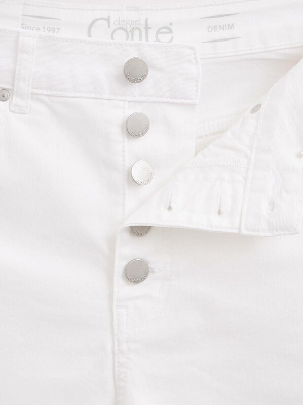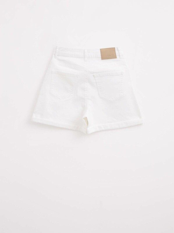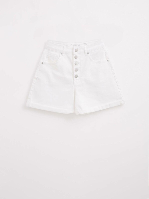 Белые джинсовые шорты A-силуэта с высокой посадкой на пуговицах CON-446 - must have в летнем гардеробе. Плотные и вместе с тем дышащие благодаря высокому содержанию хлопка, эти шорты прекрасно держат форму и гарантирую легкость и комфорт даже в самый жаркий день.