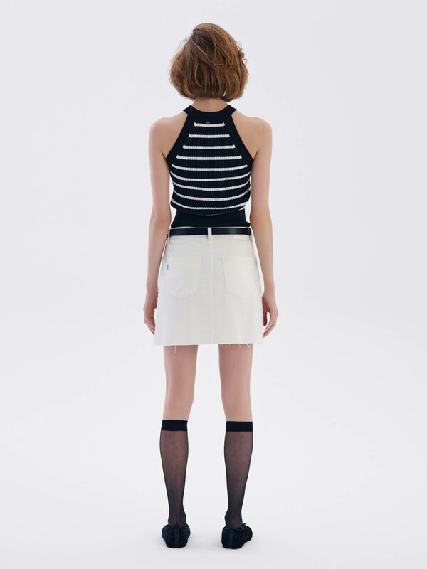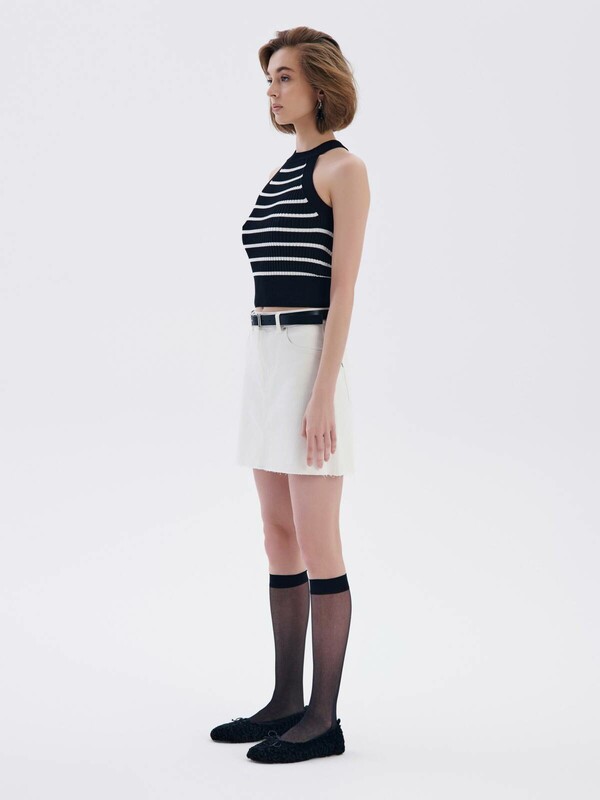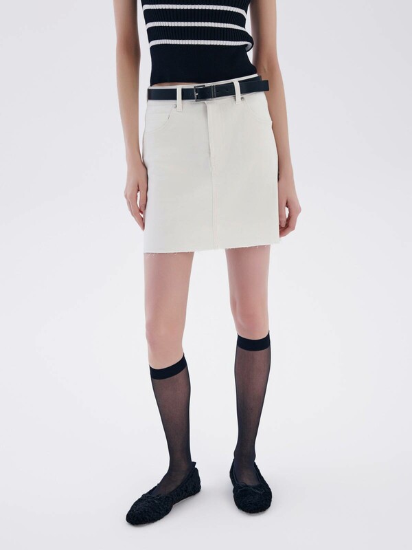 Джинсовая юбка А-силуэта с необработанным краем станет основой для множества индивидуальных образов и стильных идей.