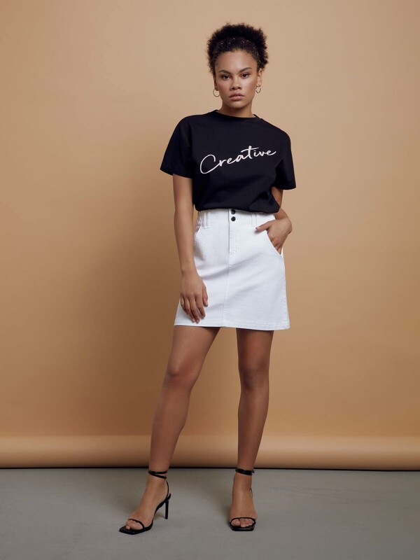 Белая джинсовая юбка прямого силуэта с высокой посадкой CON-425 станет основой для множества индивидуальных образов и стильных идей. Модель отлично сочетается с рубашками, футболками и свитшотами.