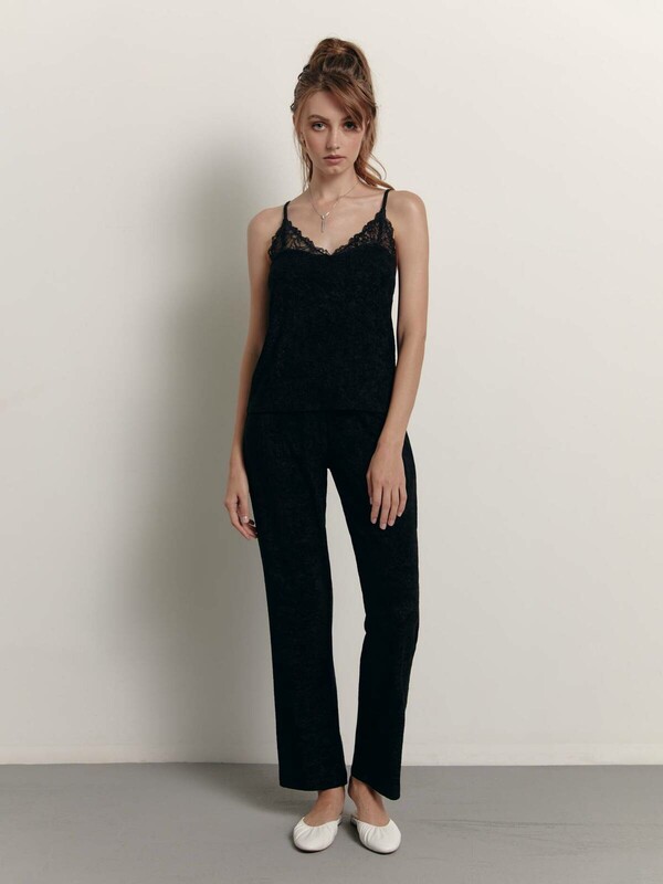 Топ для дома INSOMNIA из деликатного, бархатного на ощупь и ультрамягкого целлюлозного полотна премиального качества - must have в домашнем гардеробе девушки. Вы оцените удобную свободную посадку по фигуре и элегантную отделку кружевом. · свободный крой· мягкие чашки· тонкие эластичные бретели· элегантное кружево по линии декольте· мягкое целлюлозное полотно премиального качества· сохранение формы и цвета при соблюдении рекомендаций по уходу· комфортное и красивое решение для домашнего гардероба.