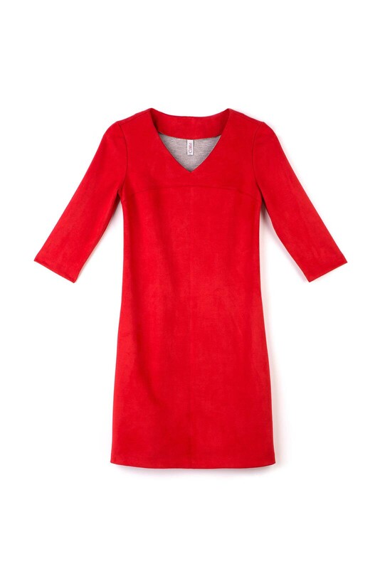 Яркое платье-футляр с эффектом замши - стильная и эффектная находка для вашего гардероба. Платье прекрасно тянется и безупречно смотрится на фигуре. V-образный вырез и отделочные строчки визуально стройнят и подчеркивают ваш силуэт. Материал нежный на ощупь и приятный к телу. Приятным и функциональным открытием станут практически незаметные боковые карманы. полиэстер 77%, вискоза 16%, эластан 7%