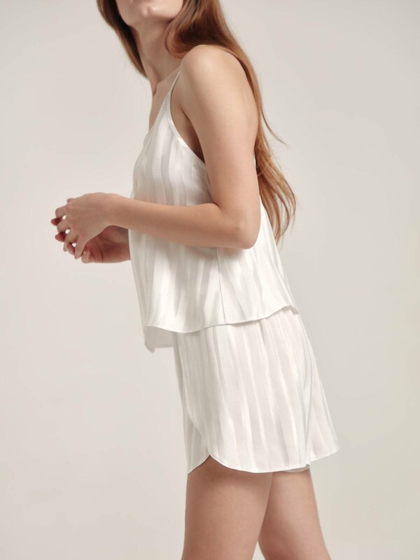 Топ умеренно свободного кроя с атласными полосами – эффектный, соблазнительный и при этом комфортный вариант для домашнего и бельевого гардероба. SILK TOUCH VISCOSE: премиальная вискоза с эффектом «ощущение шелка» подарит мягкость и комфорт на протяжении всего дня. · V-образная линия декольте· тонкие регулируемые бретели, переходящие в перекрест по спине· глубокий вырез по спине · умеренно свободный крой· вискоза премиального качества · полотно с атласными вертикальными полосами· сохранение формы и цвета при соблюдении рекомендаций по уходу· эффектный и соблазнительный вариант для домашнего гардероба.