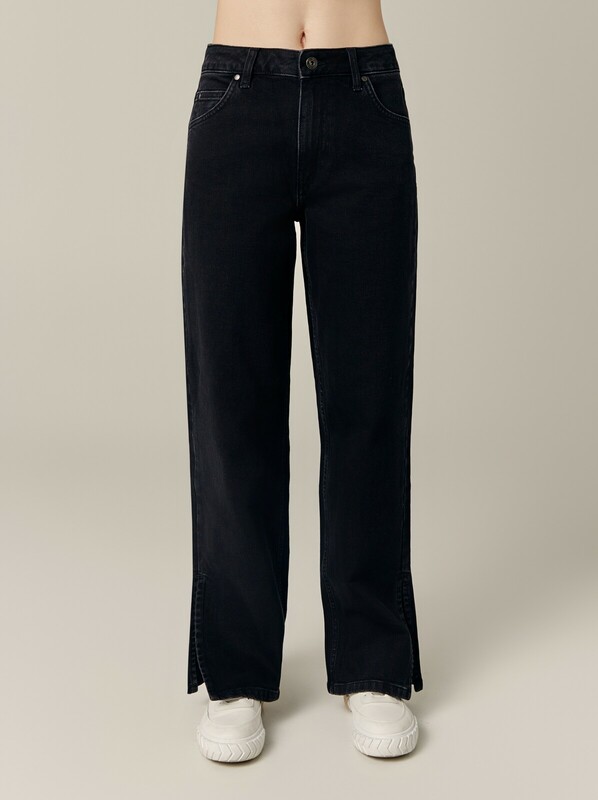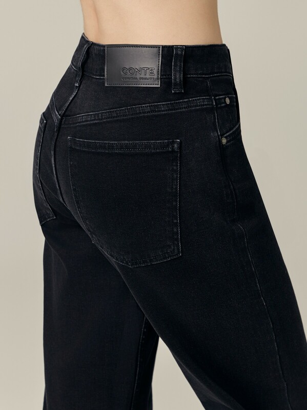 Прямой крой CONTE CON-717 Черные джинсы straight из eco-friendly денима с разрезами по бокам