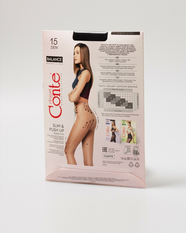 Колготки BALANCE 15 моделируют зону живота и создают эффект push-up в зоне ягодиц благодаря специальной технологии вязания разной плотности. Колготки связаны из высокопрочных FDY-нитей и обладают повышенной устойчивостью к образованию стрелок. • 15 den по ногам / 80 den по торсу • прозрачные и эластичные • высокопрочные FDY-нити • утягивающий торс в виде шортиков • специальная технология вязания разной плотности • моделирование зоны живота • push-up в зоне ягодиц • плоский шов • хлопковая ластовица • уплотненный мысок • комфортное преображение силуэта. полиамид 81%, эластан 19%