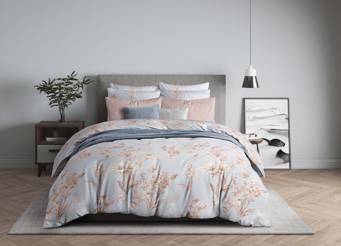 Постельное белье Blueberry, сатин, веточки, бежевый 1.5 СП