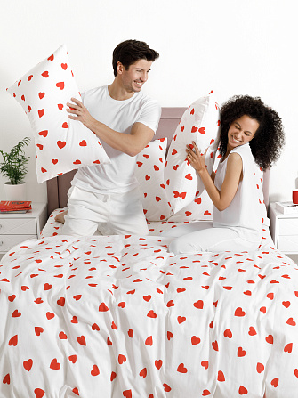 Постельное белье Lovely, бязь, сердечки, белый 1.5 сп