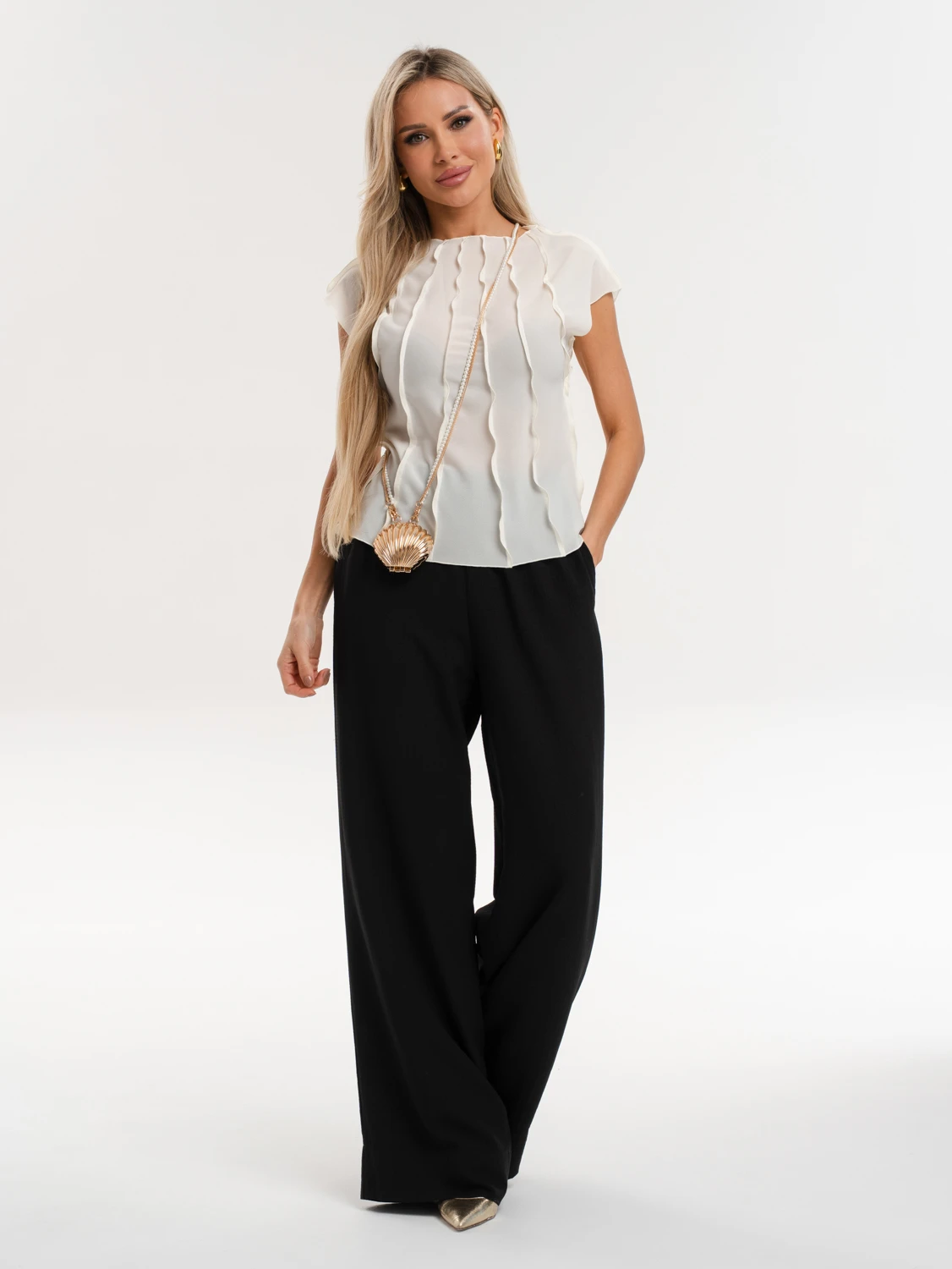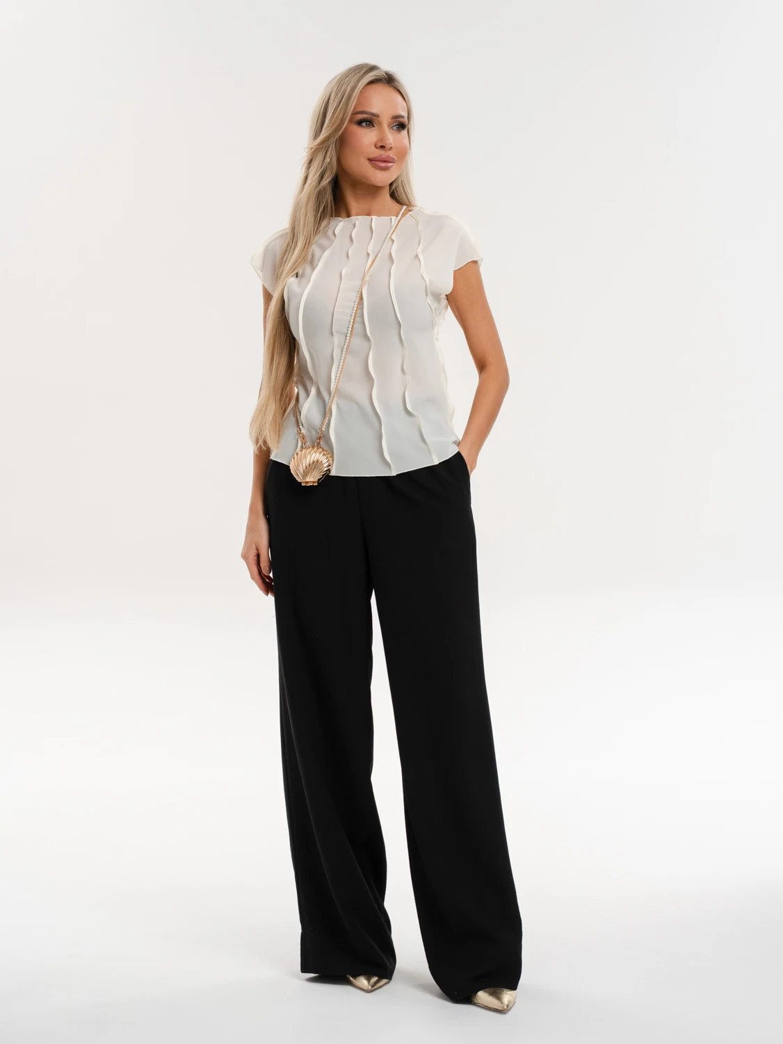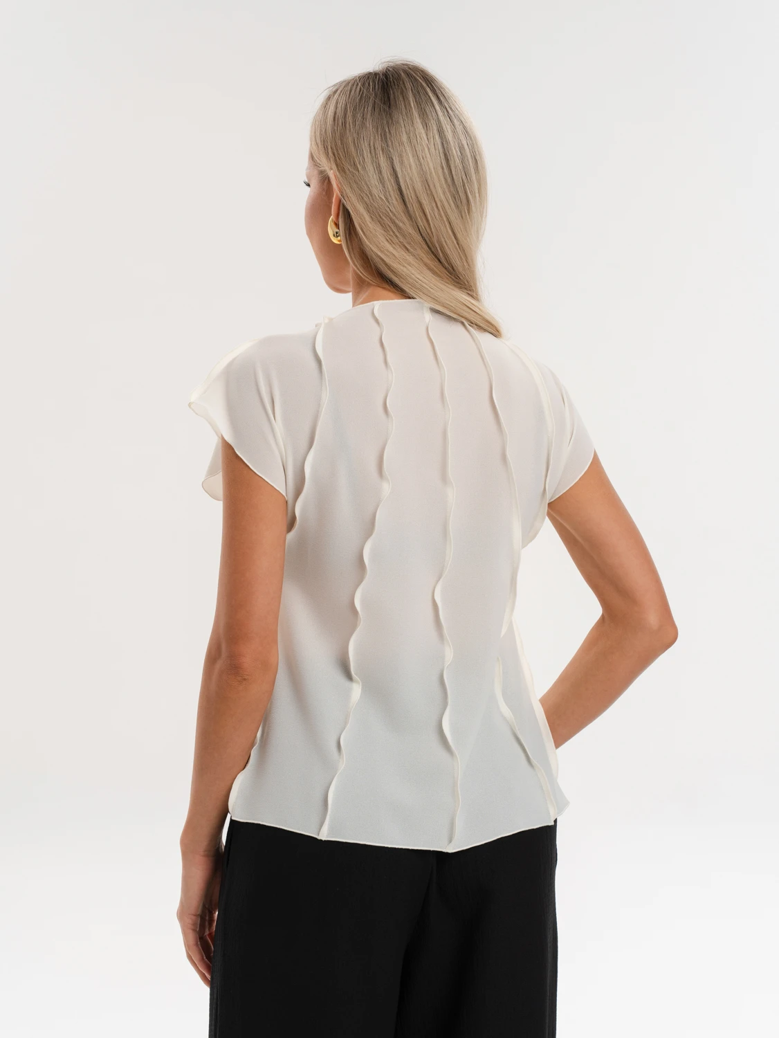 Блуза из шифона с декоративными вертикальными отстрочками по всему изделию.