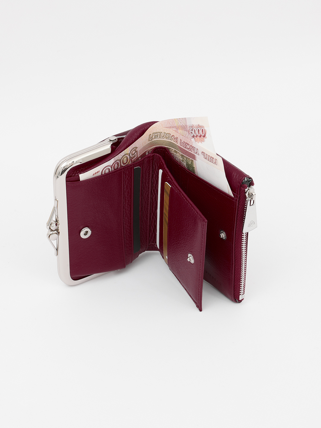 Небольшой кошелёк с застёжкой-фермуаром и металлическими буквами Di Gregorio из лаковой кожи бордового оттенка кgr8078 Z кошелёк женский