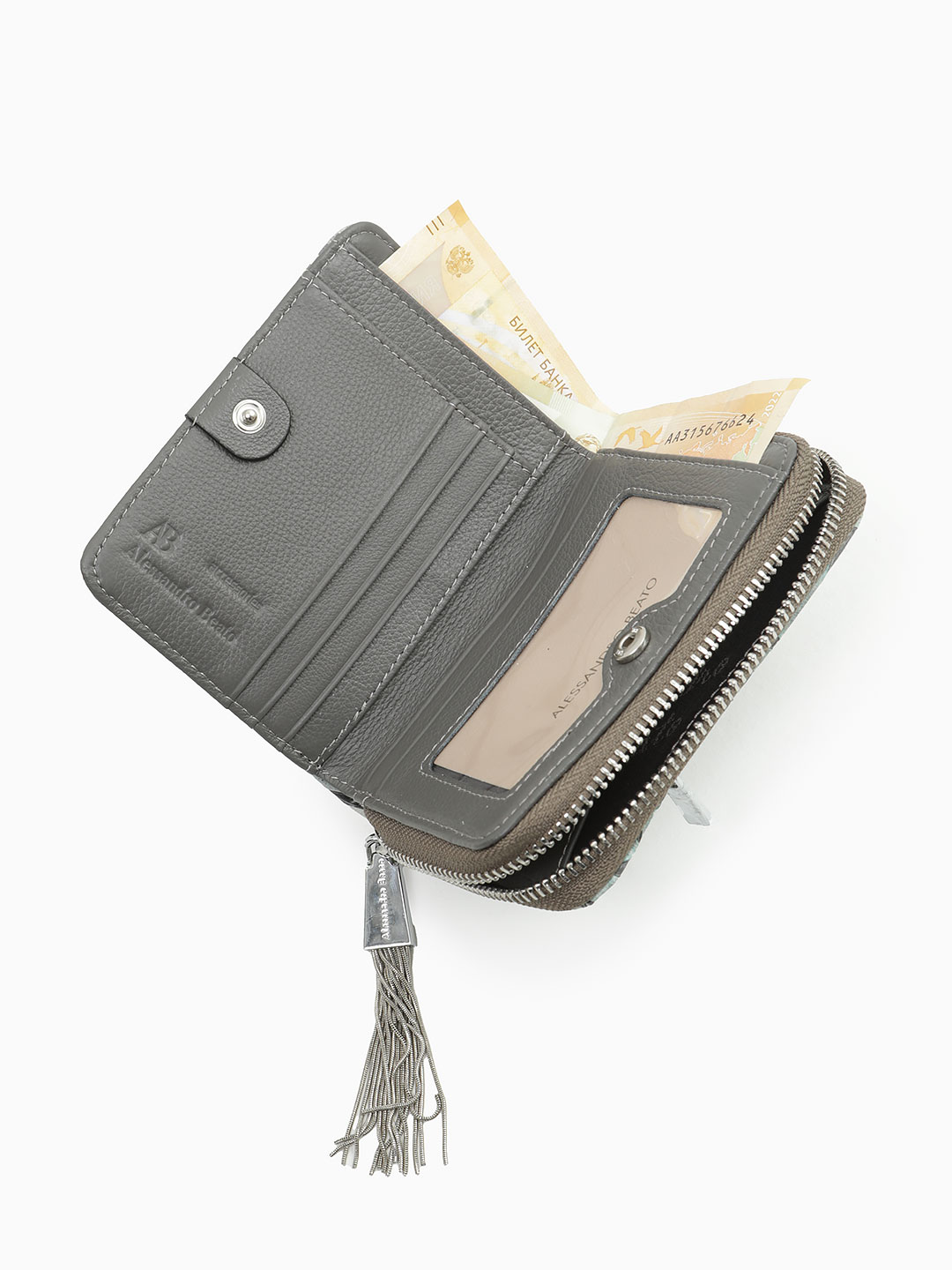 Миниатюрный кошелёк с металлическим пуллером Alessandro Beato в серо-зеленых тонах с объемным тиснением кab170-6806-7015-608 кошелёк женский