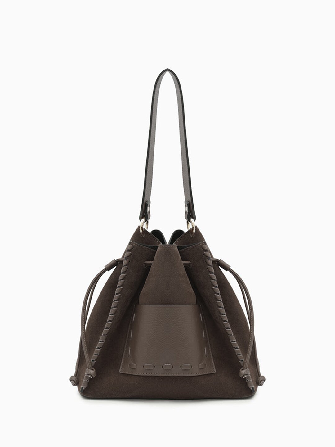 Кисет из замши с кожаным карманом снаружи от FOLLE в коричневом цвете fo2611 scamosciato tm