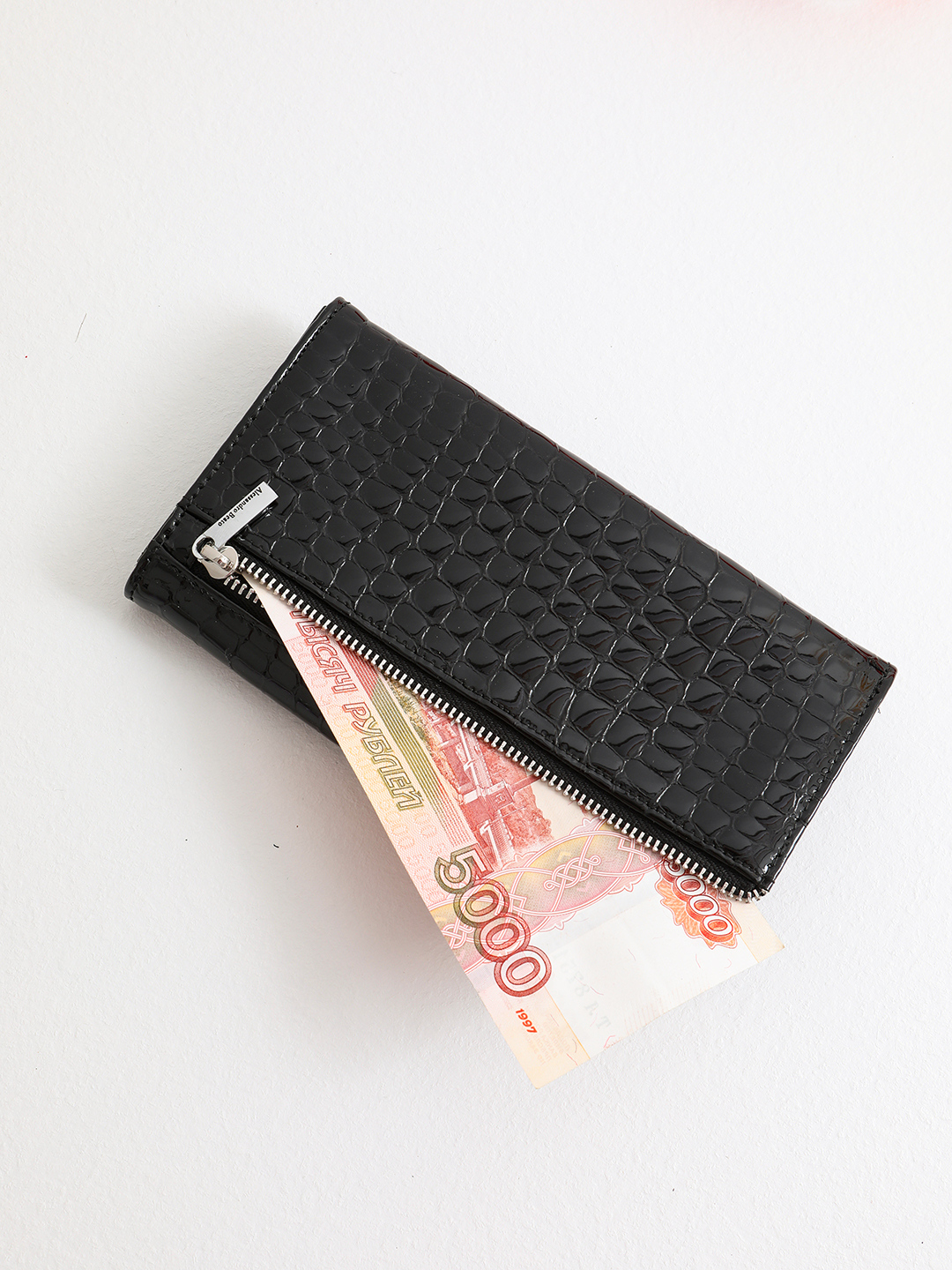 Прямоугольный кошелёк-бумажник с логотипом Alessandro Beato из черной лакированной кожи с тиснением под крокодила кab127-4499-6552 кошелёк женский
