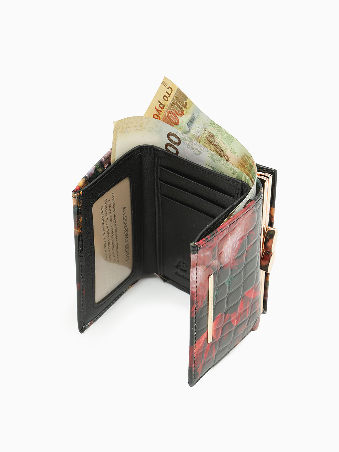 Небольшой кошелёк с застёжкой-фермуаром от Alessandro Beato из черной лакированной кожи под крокодила с цветочным принтом кab165-6829-6552 кошелёк женский