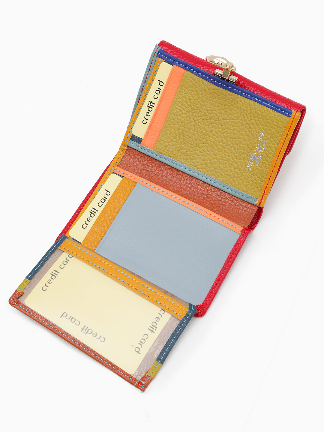 Кошелёк из натуральной кожи красного цвета с монетницей и золотистым замком кfo8639 rosso