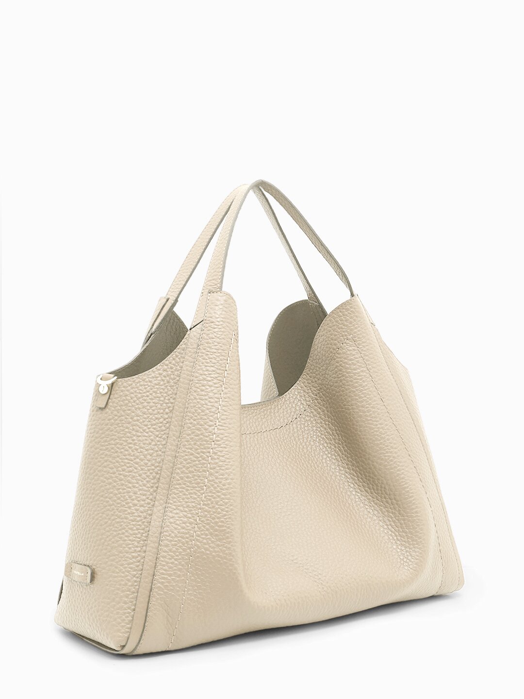 Сумка-шоппер с брендированной нашивкой от Loristella в бежевой крупнозернистой натуральной коже ls2787 serena sabbia