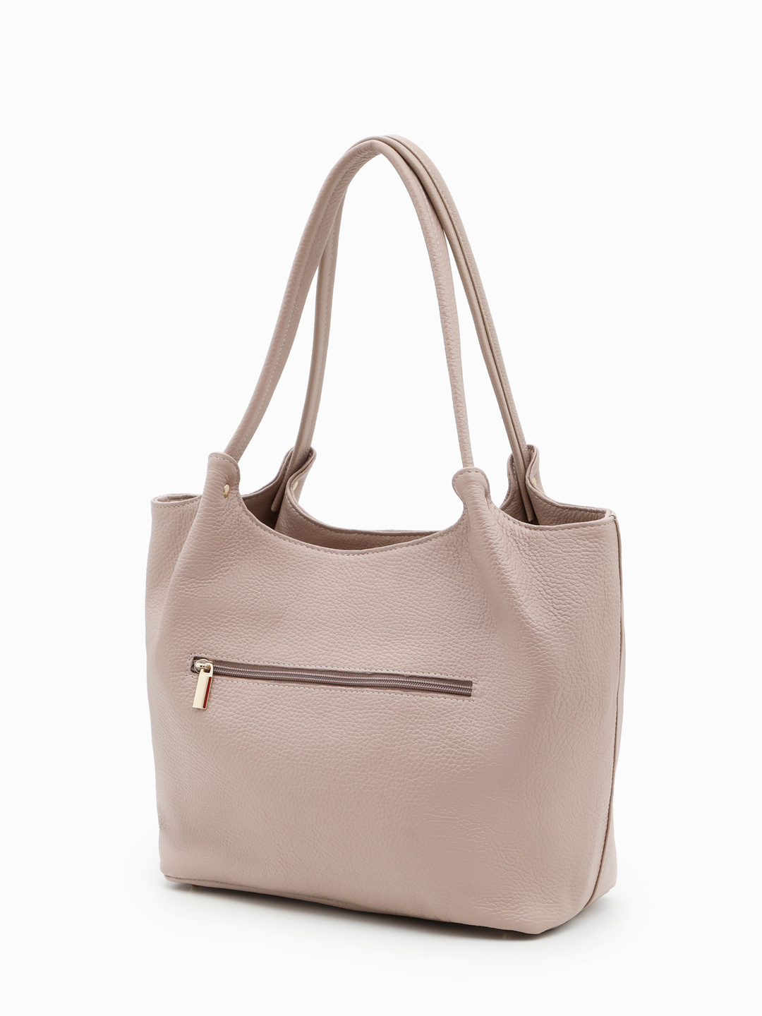 Минималистичный шоппер из зернистой кожи с круглой фурнитурой FOLLE в пудровом цвете fo1814-HFG 785 пудра