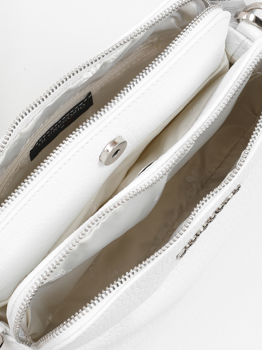 Прямоугольная сумка через плечо с тремя отделениями от Di Gregorio в крупнозернистой коже белого цвета gr8798 zodiaco bianco