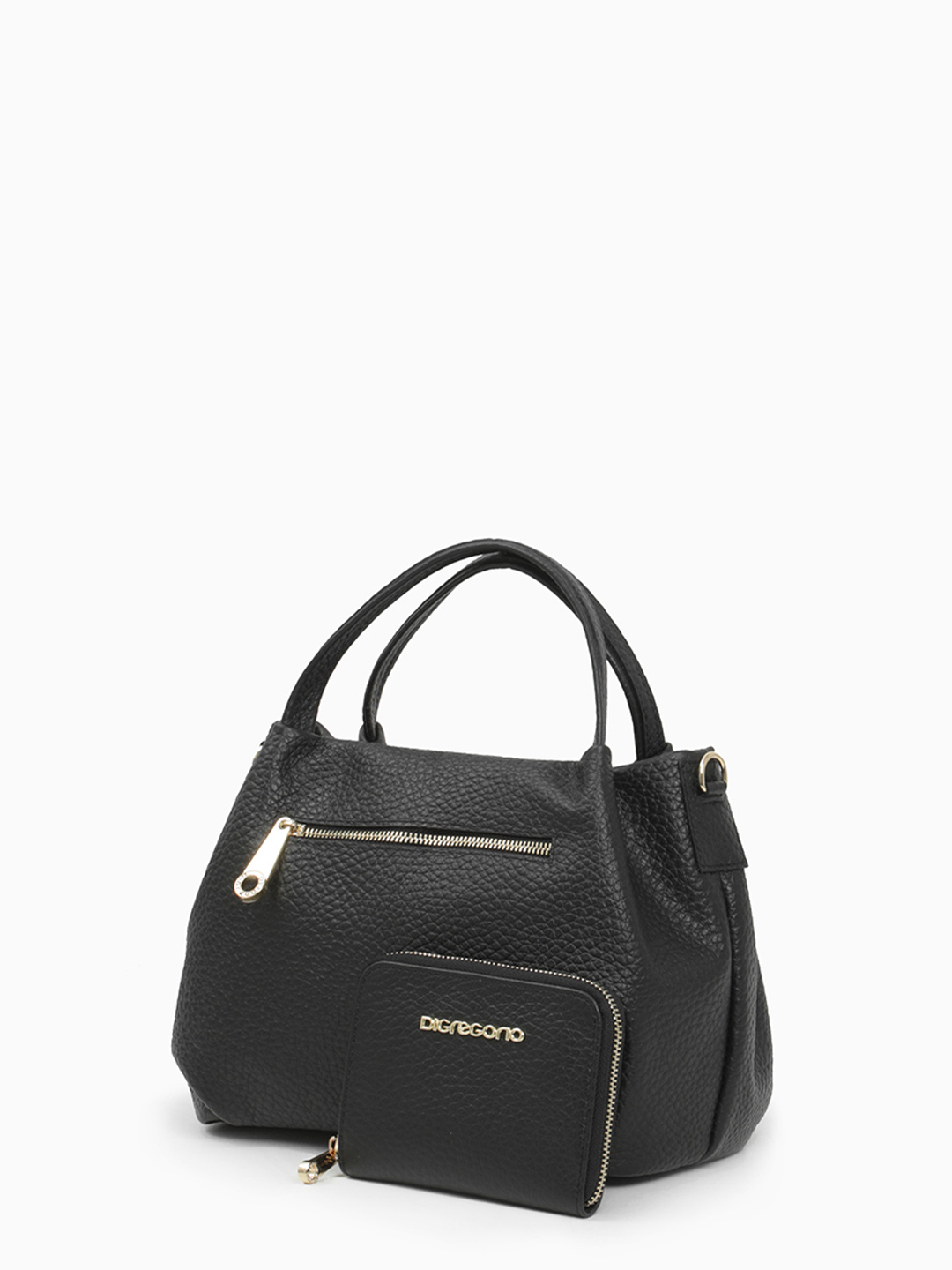 Небольшая сумка с дополнительным кошельком из крупнозернистой кожи чёрного цвета от Di Gregorio gr8810 zodiaco nero oro +кошелёк