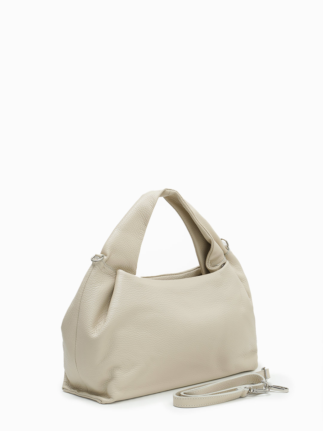 Небольшая сумка-мешок с широкой ручкой от Di Gregorio из натуральной кожи бежевого цвета gr9154 vitello latte