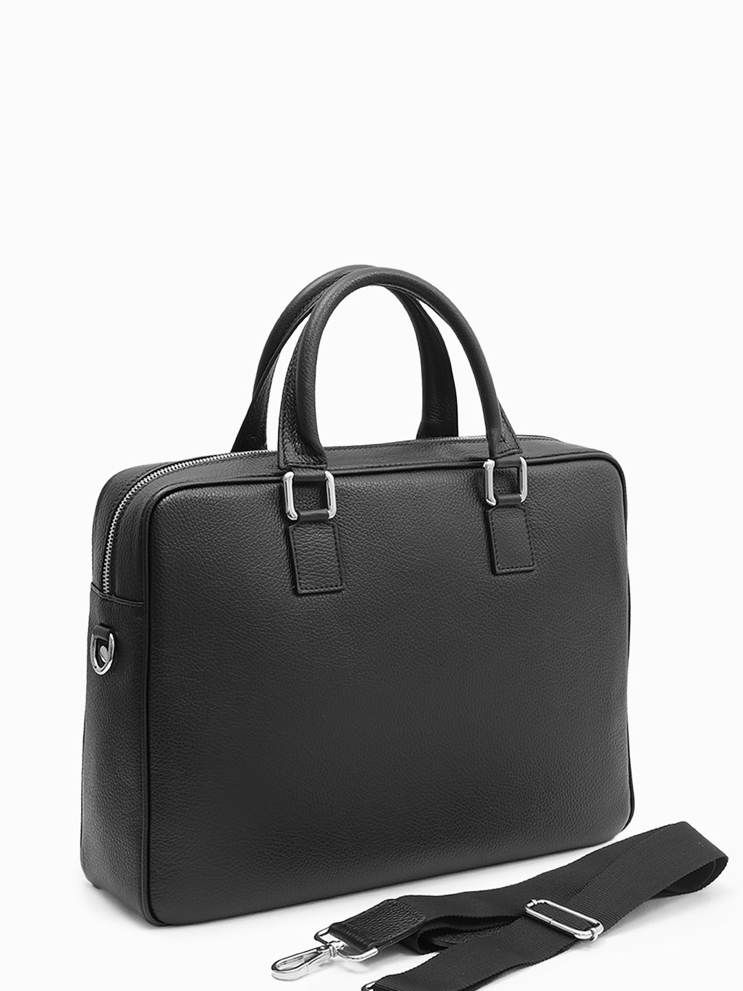 Большая мужская деловая сумка от Di Gregorio с двумя карманами спереди из натуральной черной кожи gr8709 UOMO vitello nero