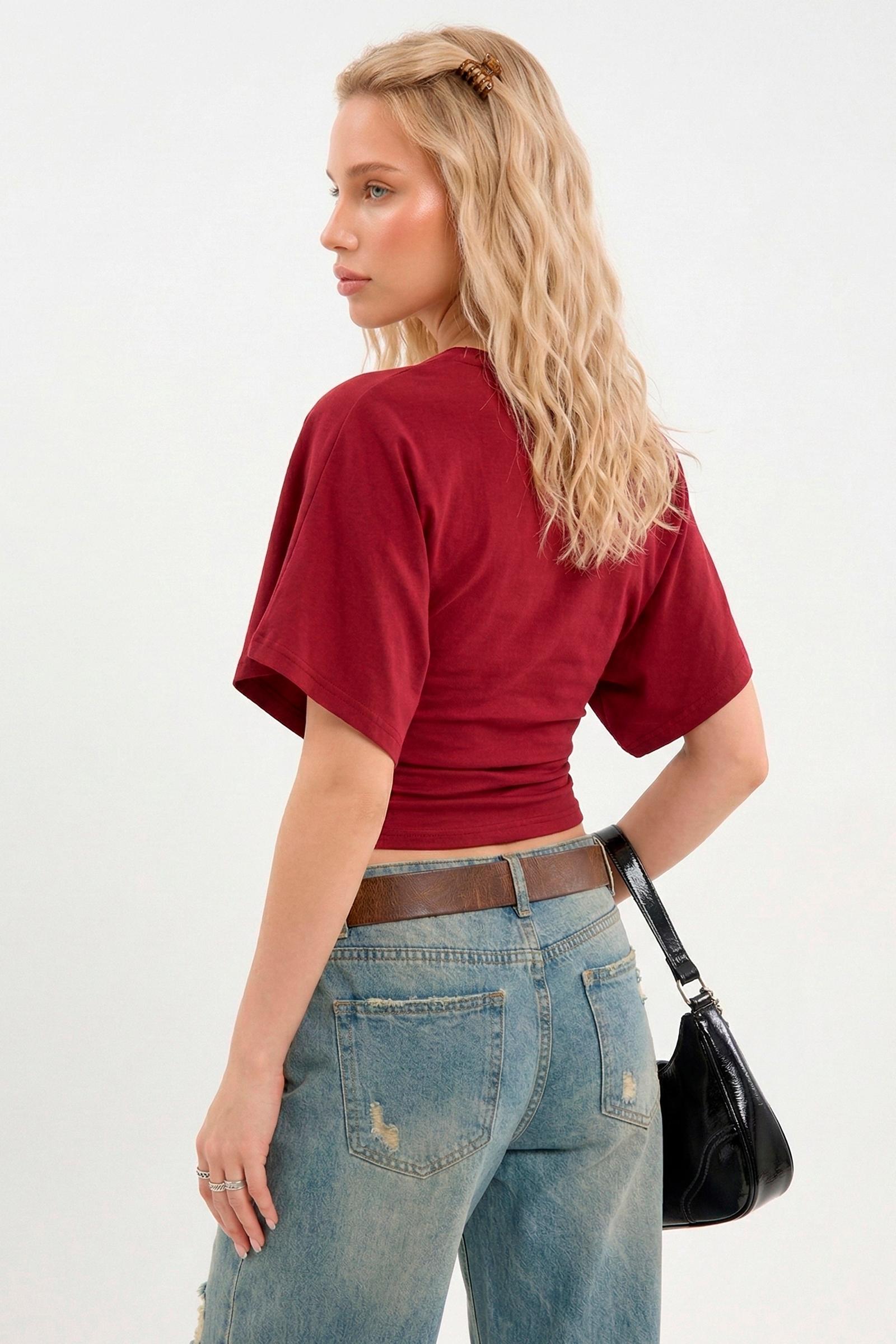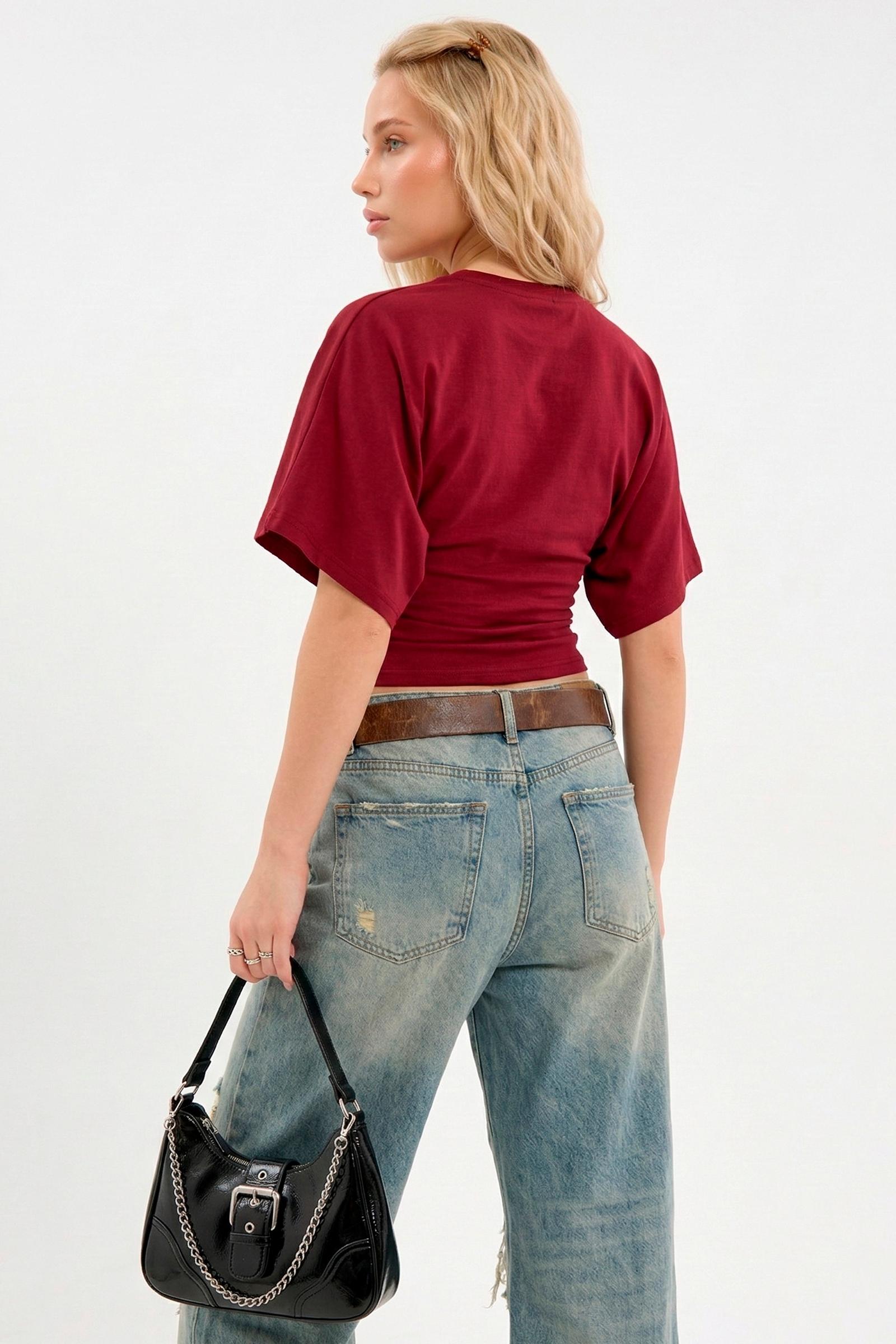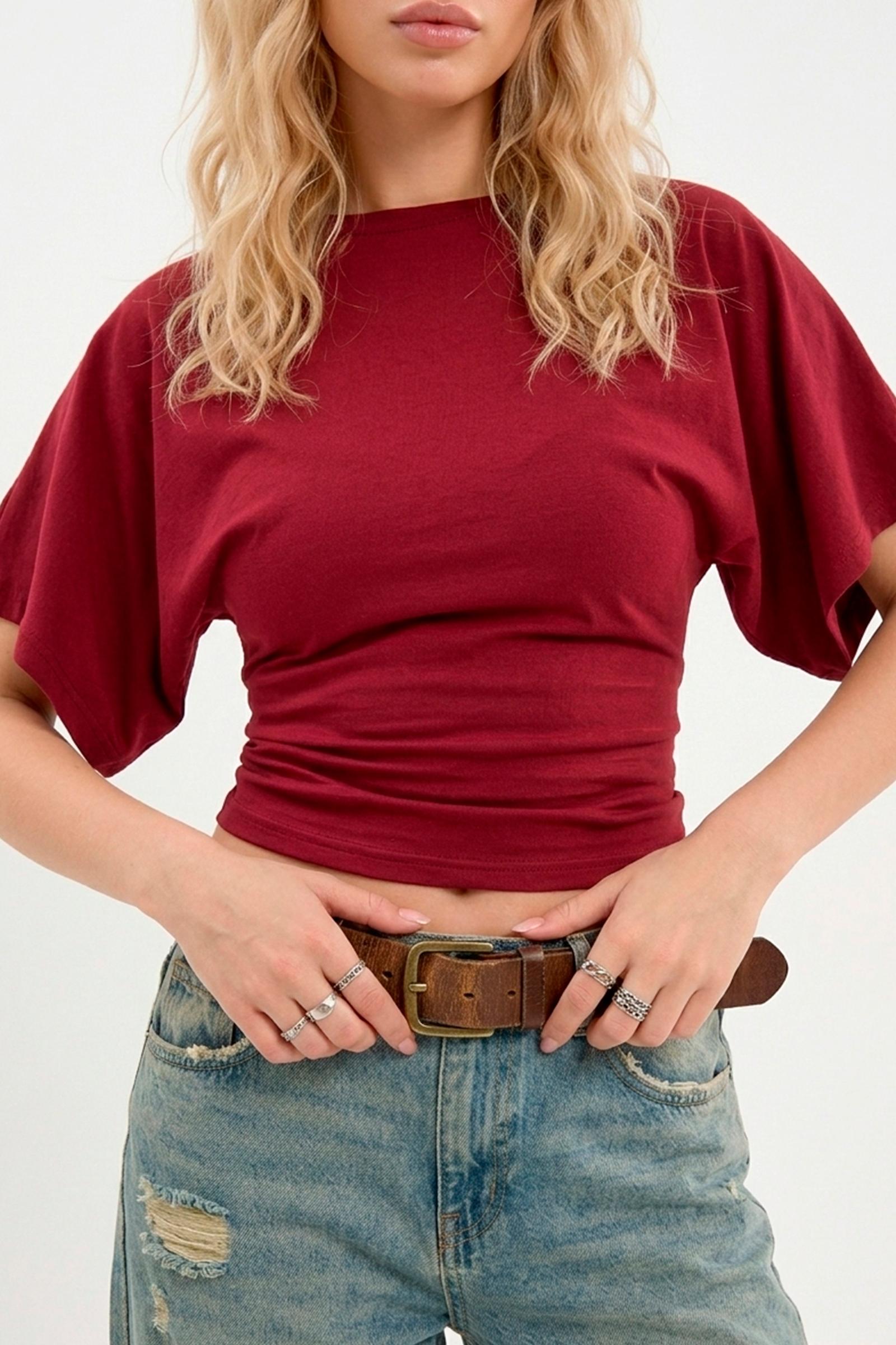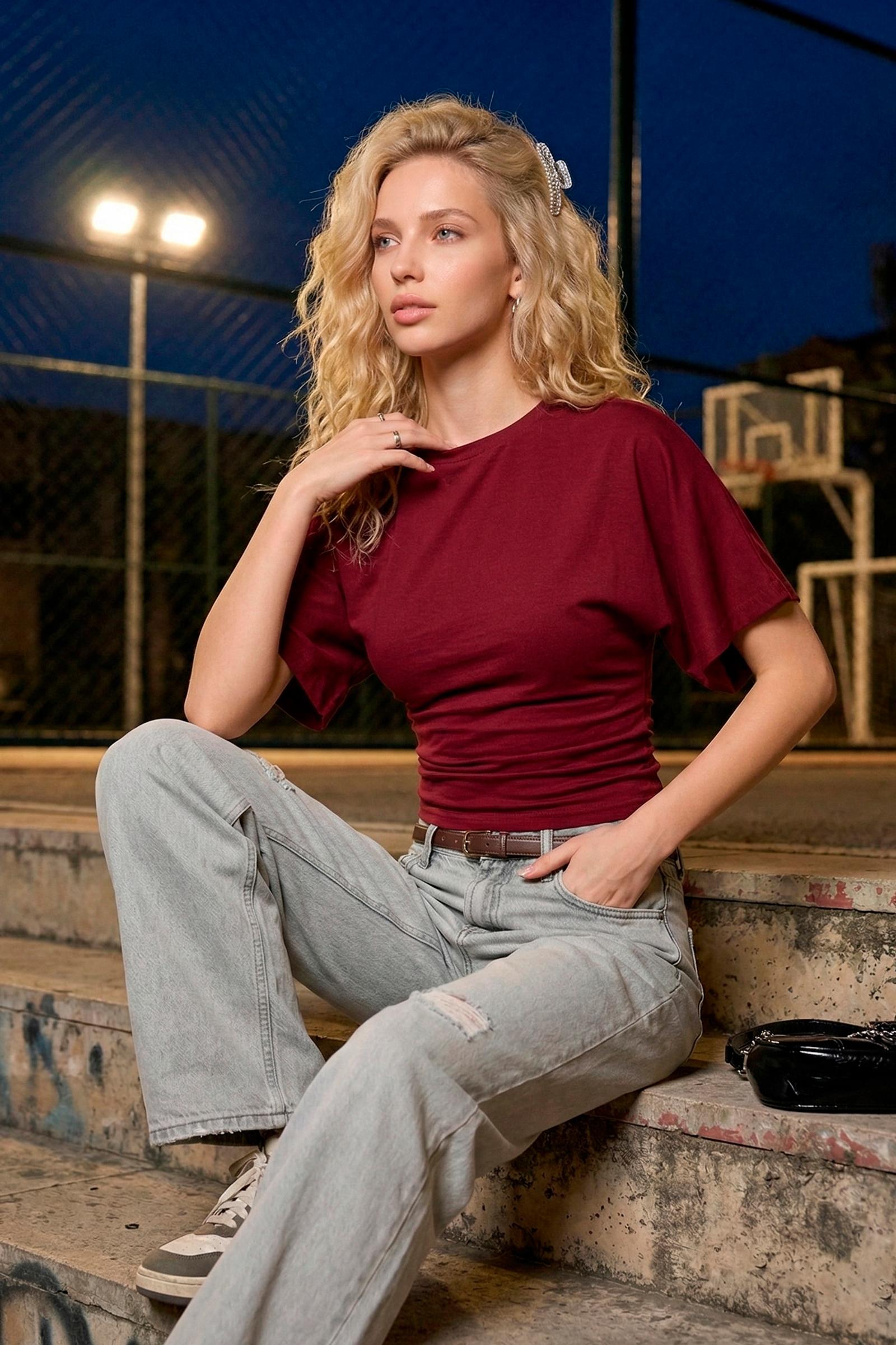 Ультрамодная футболка из мягкой фуллайкры с приталенным силуэтом. Цельнокроеный рукав и зауженная талия создают эффект легкой драпировки спереди, который визуально стройнит и подчеркивает фигуру. Идеальная посадка и комфорт на каждый день.