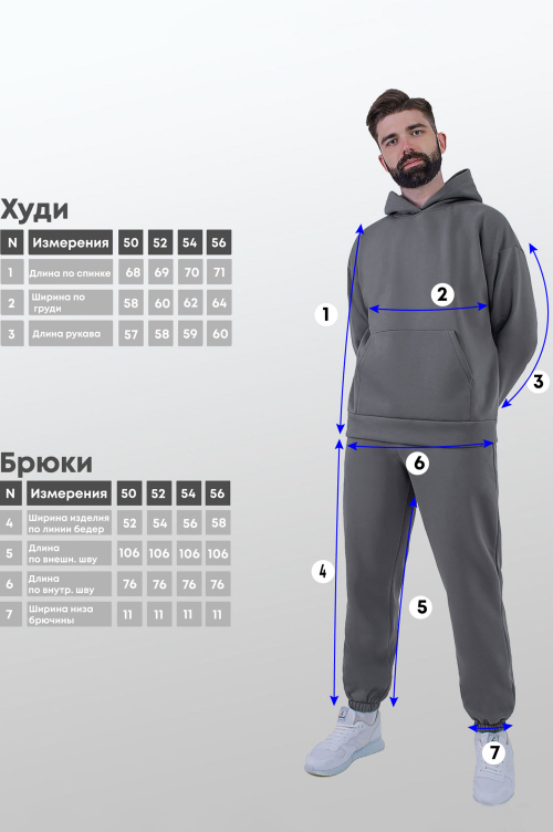 50-56 Арт. 69101 Костюм с брюками мужской с начесом 50-56 СЕР