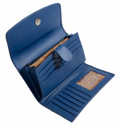 Закрывается внахлест на кнопку. Снаружи имеется 1 дополнительный кармашек. Внутри 2 разворота, в одном из них:✓2 отделения под купюры;